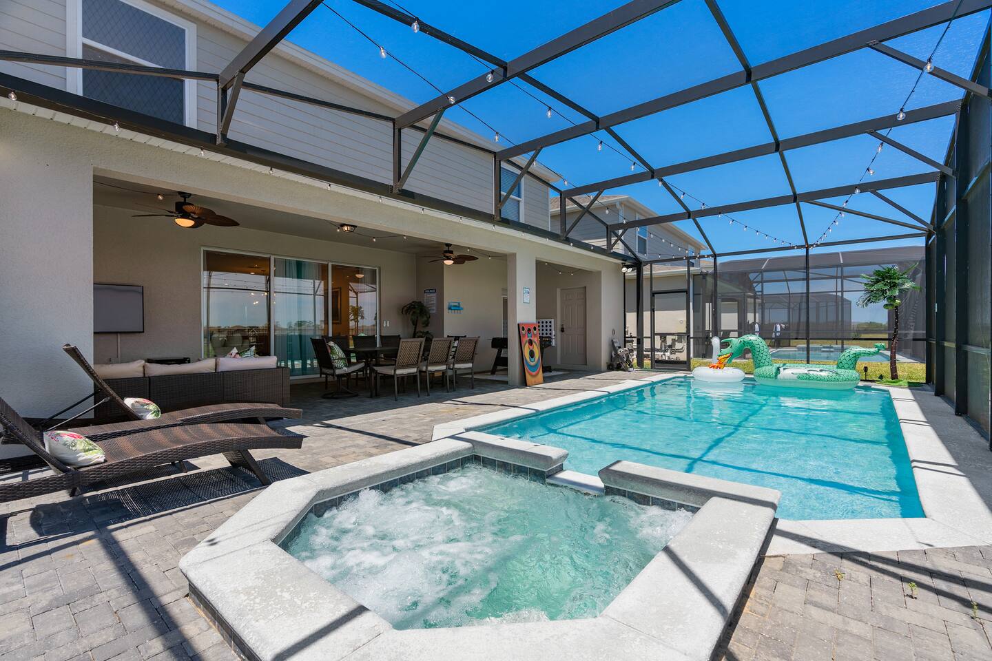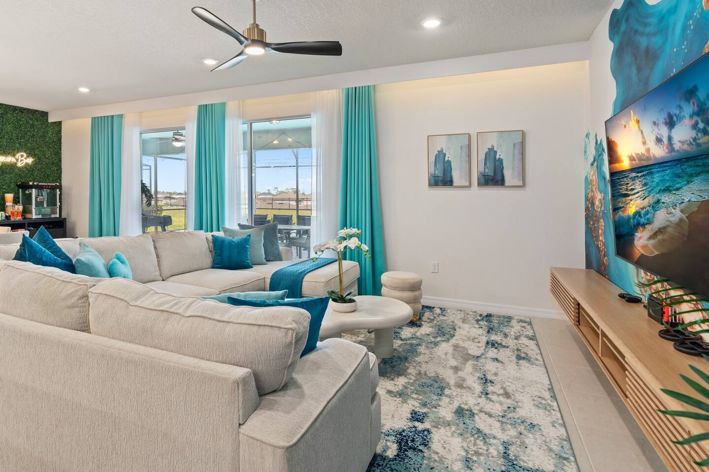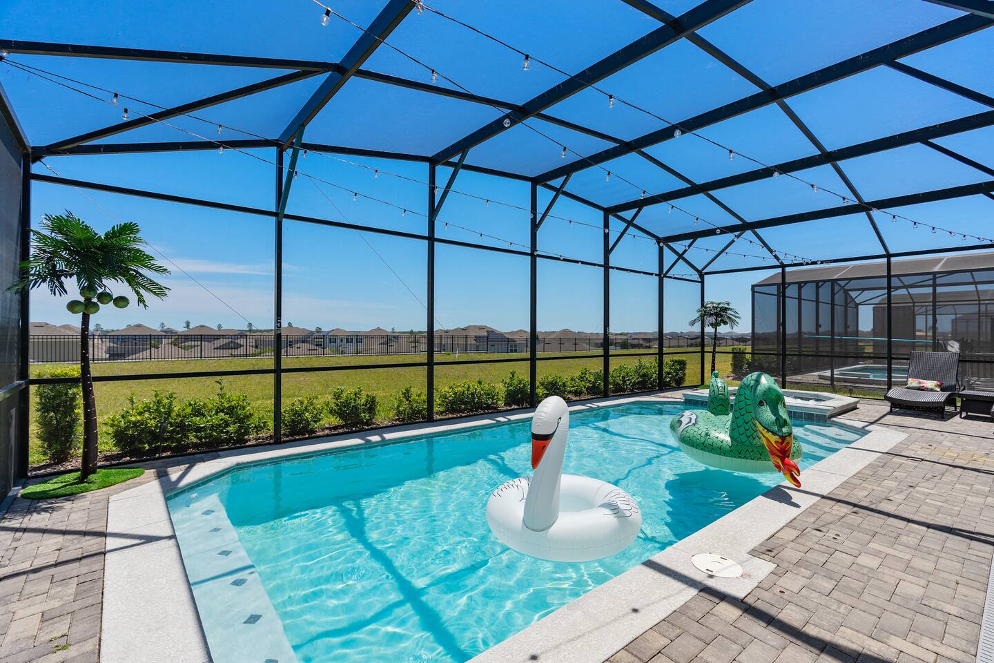 ✹ ULTIMATE COMFORT We take pride in providing thoughtful amenities like no-silly-checkout cleaning standards, ensuring a stress-free and enjoyable stay. ✹ SPECIAL FEATURES ✹ Coffee Bar: Brew your favorite cup with our fully stocked Keurig machine, featuring a variety of K-cups, creamers, and sugars. ✹ Popcorn Bar: Movie nights made better with a professional-sized popcorn machine, complete with flavored salts and serving buckets. ✹ Board Games & Dress-Ups: Create lasting memories with a selection of board games and imaginative costumes. ✹ BATHROOM ESSENTIALS Fully stocked with premium toiletries (shampoo, conditioner, body wash), along with plenty of toilet paper for your convenience. ✹ POOL & SPA MAINTENANCE Enjoy a perfectly heated pool and spa, cleaned weekly by professionals. Pool heating is free, but note that weather below 55°F (13°C) may limit its ability to maintain optimal temperatures. ✹ TECHNOLOGY & SECURITY External security cameras are installed at the front door, driveway, and pool equipment for guest and property safety. These are not actively monitored, and no cameras are located inside the home. ✹ HOUSEKEEPING SERVICES Daily housekeeping is not included but can be arranged for an additional fee. Mid-stay cleanings are available upon request. ✹ PEST CONTROL Our home is professionally treated regularly, but occasional tropical bugs are a reality of Florida's climate. If you notice any issues, notify us immediately, and our pest control team will handle them promptly. ✹ PACKAGE DELIVERY Packages can be delivered during your stay, but note that USPS does not deliver to vacation rental homes. Use carriers like UPS, DHL, or FedEx for doorstep delivery. ✹ TRAVEL INSURANCE RECOMMENDED We highly recommend travel insurance to protect against unexpected cancellations due to weather or travel delays, as refunds cannot be issued for such events. ✹ COMMUNITY POLICIES ✹ Smoking is strictly prohibited anywhere on the property. ✹ Guests must use bunk beds responsibly and at their own risk. ✹ Resort hours and amenities may vary seasonally.