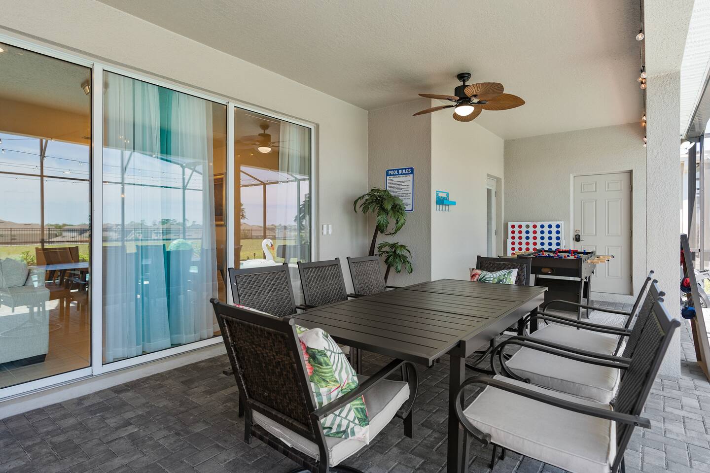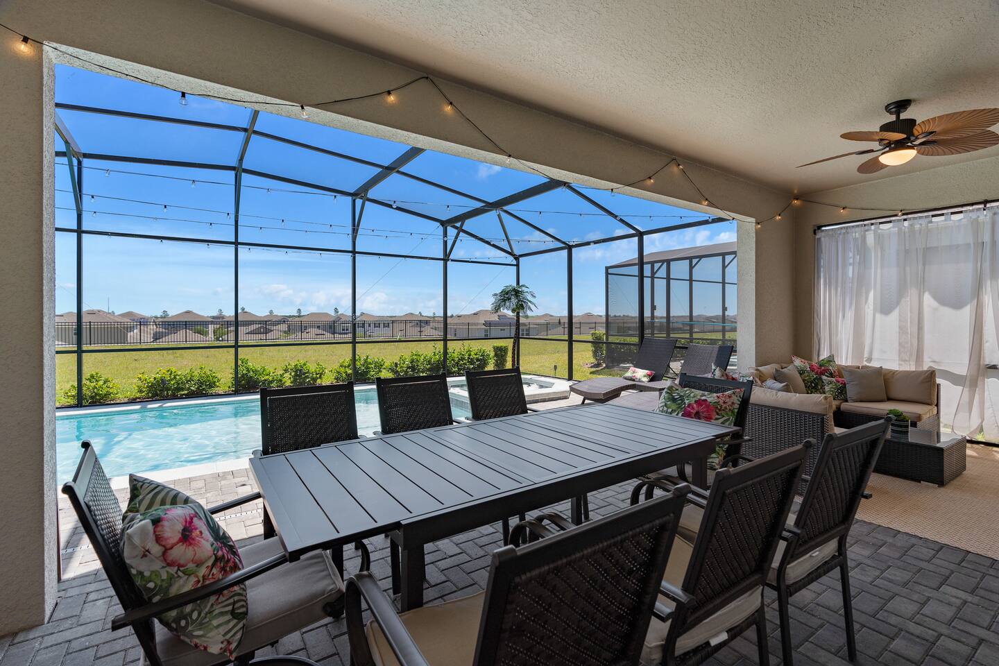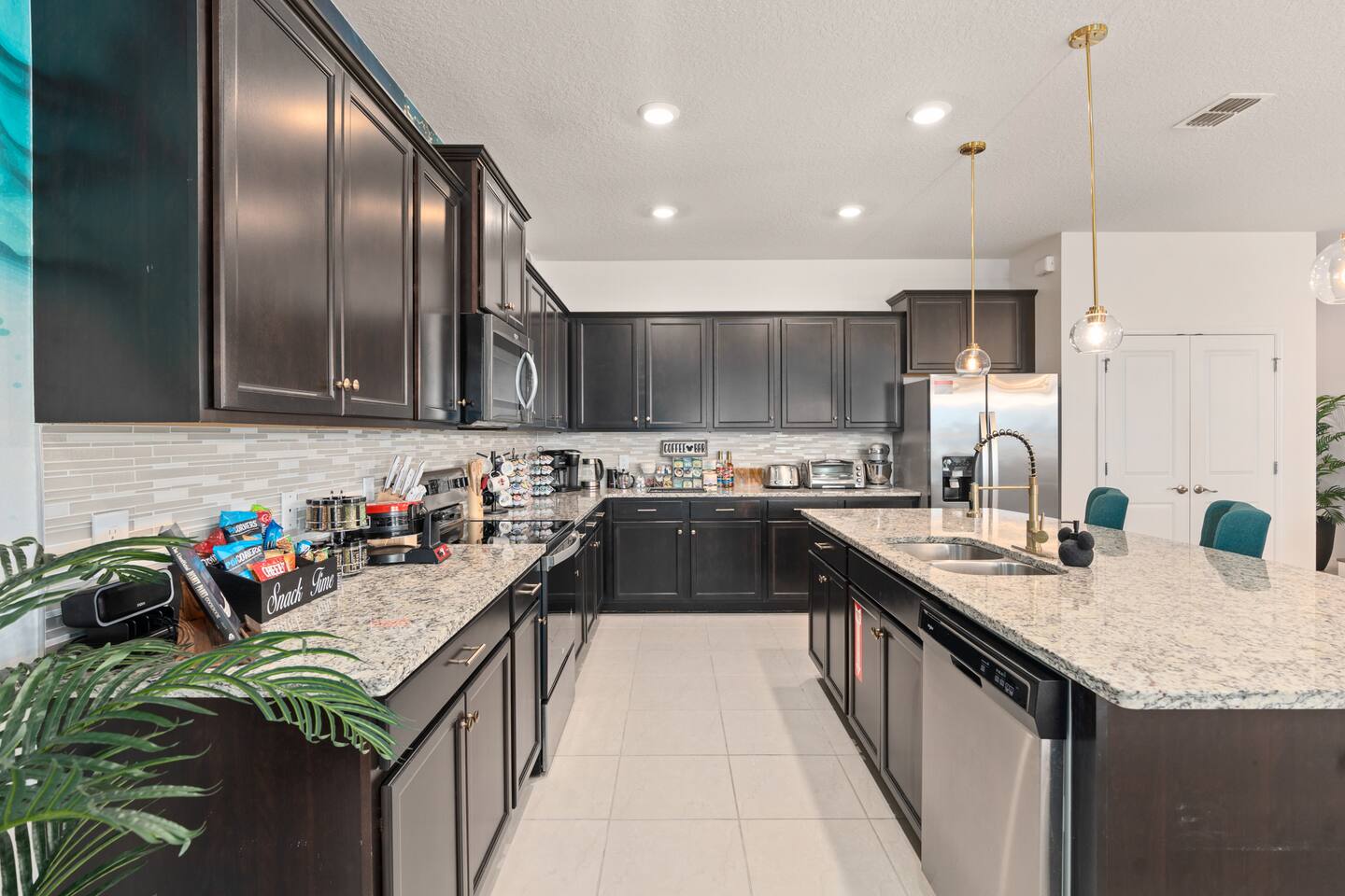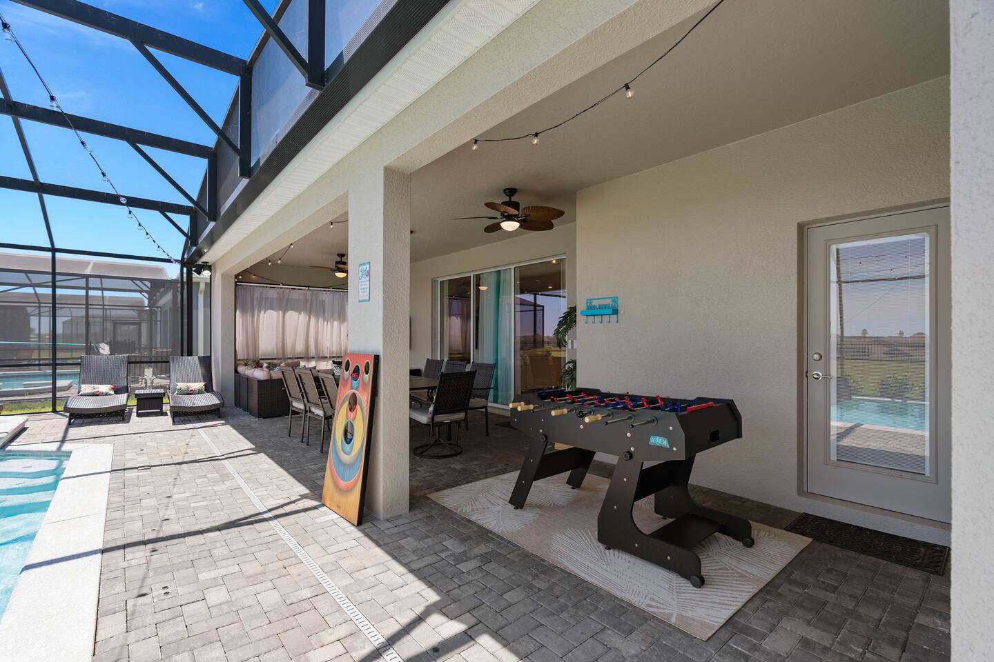 ✹ ULTIMATE COMFORT We take pride in providing thoughtful amenities like no-silly-checkout cleaning standards, ensuring a stress-free and enjoyable stay. ✹ SPECIAL FEATURES ✹ Coffee Bar: Brew your favorite cup with our fully stocked Keurig machine, featuring a variety of K-cups, creamers, and sugars. ✹ Popcorn Bar: Movie nights made better with a professional-sized popcorn machine, complete with flavored salts and serving buckets. ✹ Board Games & Dress-Ups: Create lasting memories with a selection of board games and imaginative costumes. ✹ BATHROOM ESSENTIALS Fully stocked with premium toiletries (shampoo, conditioner, body wash), along with plenty of toilet paper for your convenience. ✹ POOL & SPA MAINTENANCE Enjoy a perfectly heated pool and spa, cleaned weekly by professionals. Pool heating is free, but note that weather below 55°F (13°C) may limit its ability to maintain optimal temperatures. ✹ TECHNOLOGY & SECURITY External security cameras are installed at the front door, driveway, and pool equipment for guest and property safety. These are not actively monitored, and no cameras are located inside the home. ✹ HOUSEKEEPING SERVICES Daily housekeeping is not included but can be arranged for an additional fee. Mid-stay cleanings are available upon request. ✹ PEST CONTROL Our home is professionally treated regularly, but occasional tropical bugs are a reality of Florida's climate. If you notice any issues, notify us immediately, and our pest control team will handle them promptly. ✹ PACKAGE DELIVERY Packages can be delivered during your stay, but note that USPS does not deliver to vacation rental homes. Use carriers like UPS, DHL, or FedEx for doorstep delivery. ✹ TRAVEL INSURANCE RECOMMENDED We highly recommend travel insurance to protect against unexpected cancellations due to weather or travel delays, as refunds cannot be issued for such events. ✹ COMMUNITY POLICIES ✹ Smoking is strictly prohibited anywhere on the property. ✹ Guests must use bunk beds responsibly and at their own risk. ✹ Resort hours and amenities may vary seasonally.