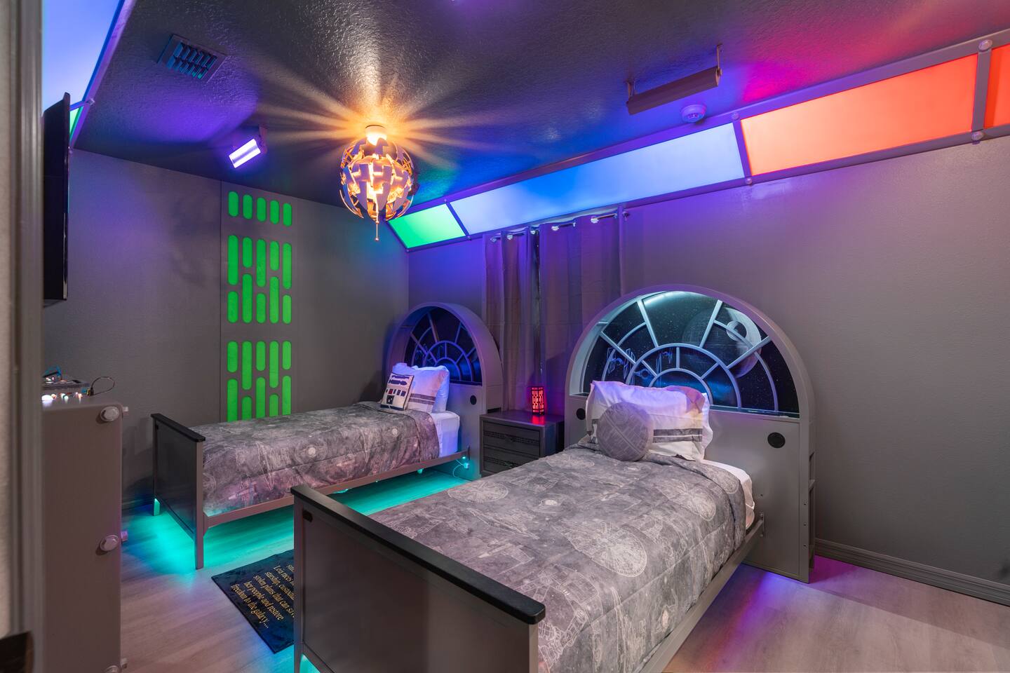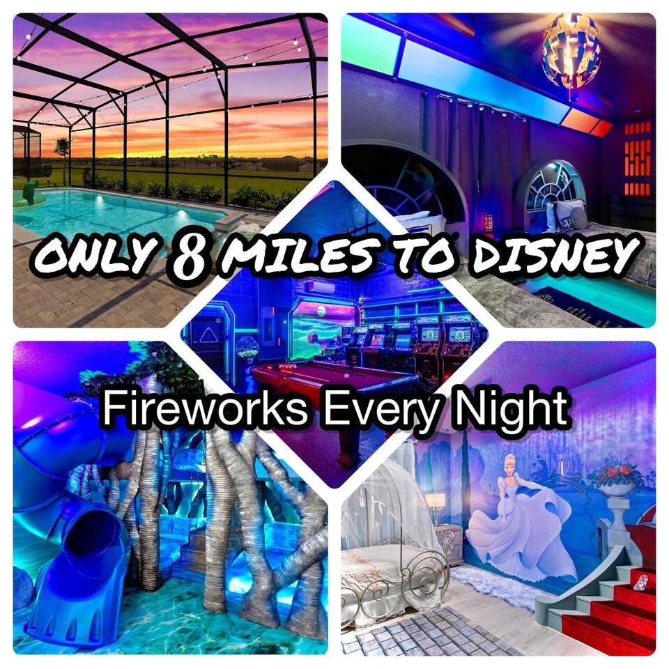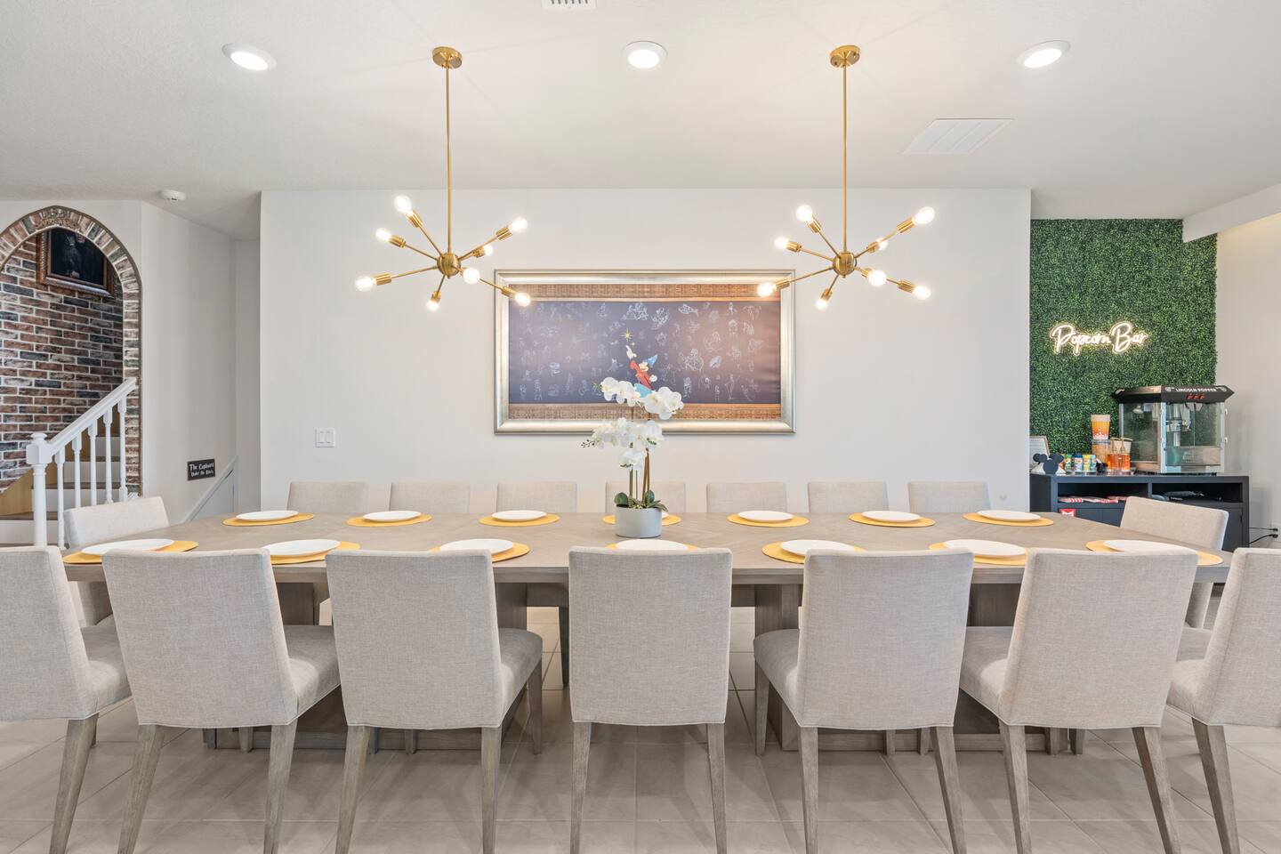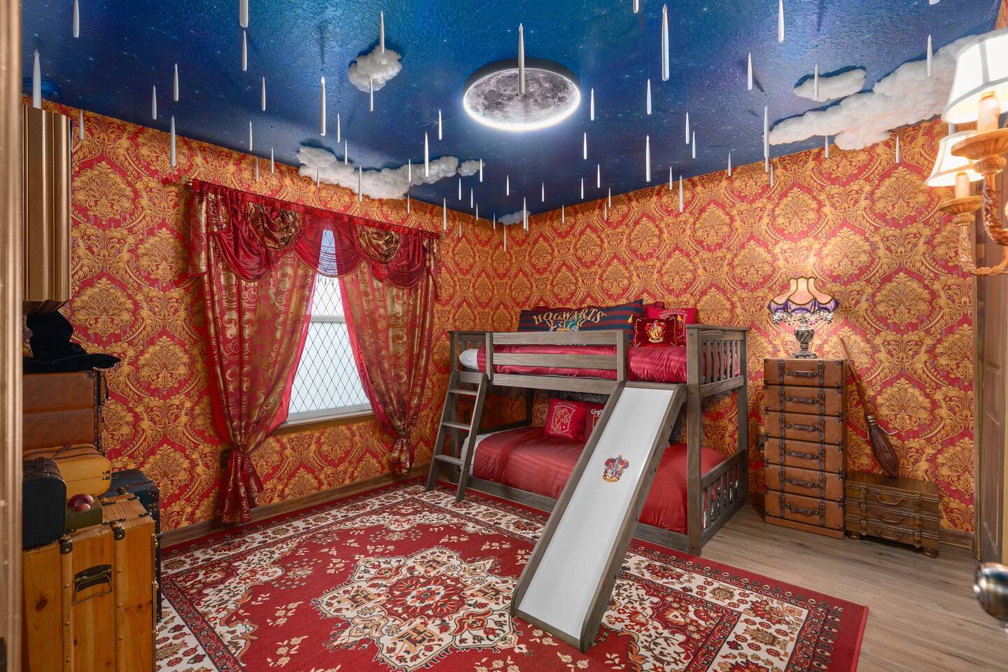 🏰 Welcome to Magic Manor – A Luxury Disney Retreat! 🌟 Step into a 4,400 sq ft dream vacation home, perfectly designed for families and groups seeking magic, fun, and relaxation near Disney World! Located in the premier Windsor Island Resort, this 9-bedroom, 8-bathroom escape offers something special for everyone and was recently featured on the TV Show Staycation! Is this property booked up? No worries—we’ve got another awesome home, same size, same resort, see our profile for our 5-star properties! ✨ Key Features: ✹ Themed Rooms: Experience 6 stunningly themed bedrooms, including Star Wars, Harry Potter (Gryffindor & Slytherin), Cinderella, Avengers, and Avatar. ✹ Exclusive In-House Escape Room: Unleash your inner wizard in the “Quest for the Quidditch”! ✹ Mandalorian Game Room & Diagon Alley Loft: Enjoy arcade games, pool table, selfie walls, and cozy family movie nights. ✹ Private Pool & Hot Tub: Swim, soak, and relax with Disney fireworks as your backdrop. 🍽️ Family-Ready Spaces: Cook gourmet meals in a modern kitchen with a coffee and popcorn bar. Dine together at a 18-person table or outdoors under the lanai with twinkle lights and cozy seating. 🌊 Resort Amenities Included: Dive into Windsor Island Resort's lazy river, mini golf, water slides, and more—all just steps away! 🎡 Prime Location: Minutes from Disney and other top Orlando attractions, restaurants, and shops. 🛏 Sleeps 25 Comfortably: With 9 spacious bedrooms; 2 king bedrooms (on first floor), 1 Queen, 2 Double sized bunk beds (Fulls), 2 Single sized bunk beds (Twins), two bedrooms with 2 Single sized beds each (4 Twins), and 1 princess single bed (Twin). Every guest will feel right at home. Exclusive Concierge Services (Upon Request): 🍽️ Private chef experiences 🎉 Event decoration services and Food Shopping and more! Additional Information: 1️⃣ Check-in: 4:00 PM, Check-out: 10:00 AM 2️⃣ Daily trash collection by HOA 3️⃣ Weekly pool and spa cleaning 4️⃣ Starter supply of essentials provided 5️⃣ Non-smoking property. 6️⃣ Travel insurance recommended * Due to HOA restrictions, a maximum of 5 vehicles are permitted per property. * Guest registration for all drivers is required at least of 48 hours in advance to access the community. * Parking is available in the driveway and the street. Please pay attention to parking signs to avoid getting towed. Book your magical stay today and make memories that last a lifetime!