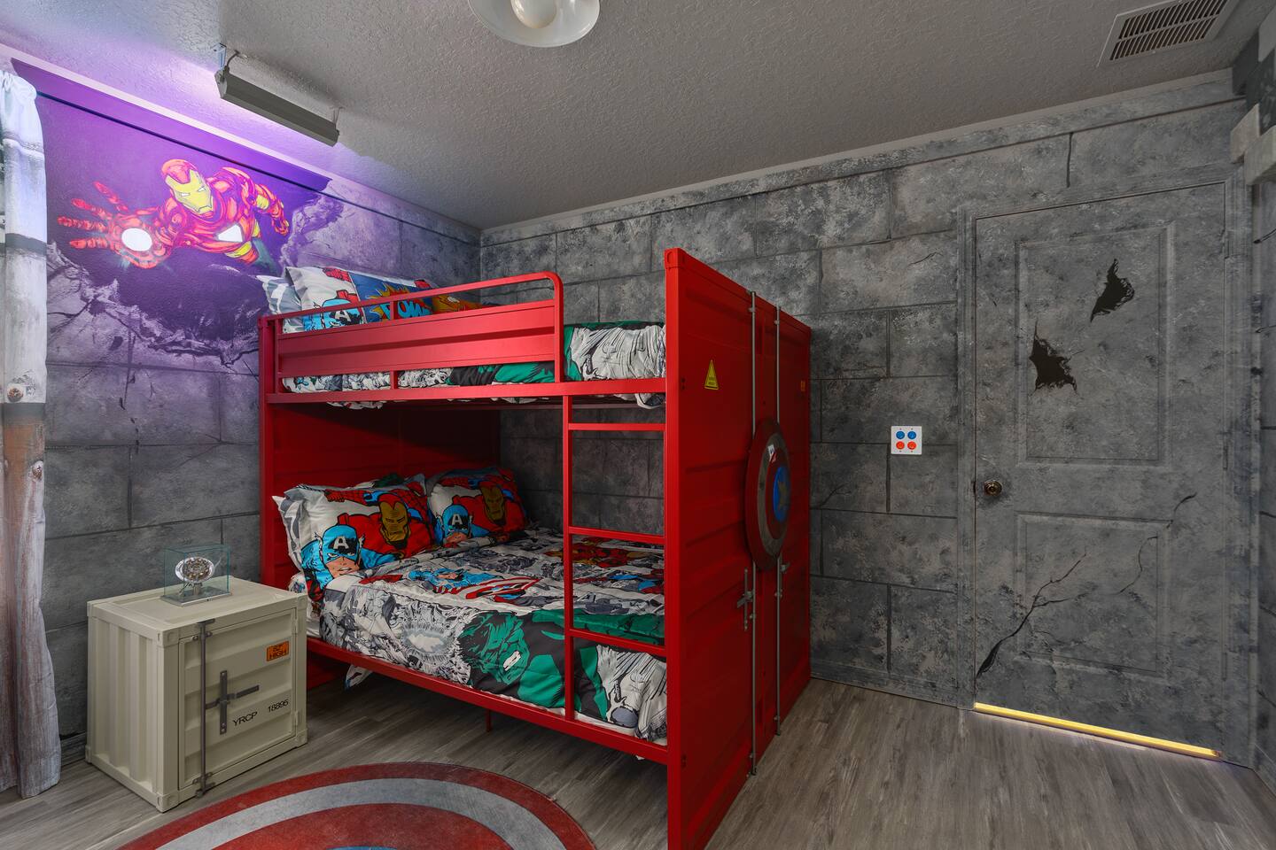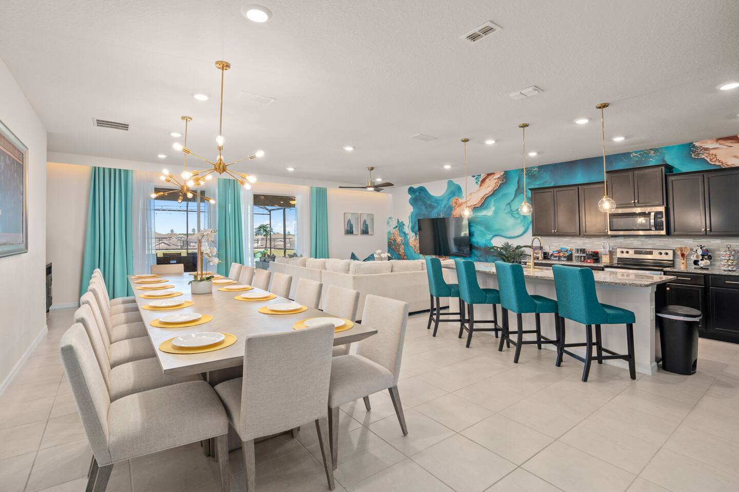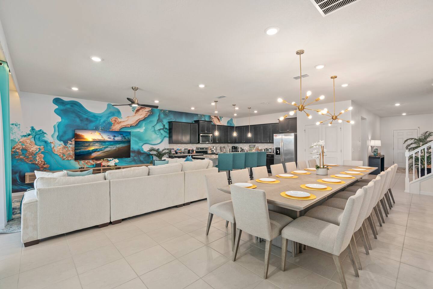 🏰 Welcome to Magic Manor – A Luxury Disney Retreat! 🌟 Step into a 4,400 sq ft dream vacation home, perfectly designed for families and groups seeking magic, fun, and relaxation near Disney World! Located in the premier Windsor Island Resort, this 9-bedroom, 8-bathroom escape offers something special for everyone and was recently featured on the TV Show Staycation! Is this property booked up? No worries—we’ve got another awesome home, same size, same resort, see our profile for our 5-star properties! ✨ Key Features: ✹ Themed Rooms: Experience 6 stunningly themed bedrooms, including Star Wars, Harry Potter (Gryffindor & Slytherin), Cinderella, Avengers, and Avatar. ✹ Exclusive In-House Escape Room: Unleash your inner wizard in the “Quest for the Quidditch”! ✹ Mandalorian Game Room & Diagon Alley Loft: Enjoy arcade games, pool table, selfie walls, and cozy family movie nights. ✹ Private Pool & Hot Tub: Swim, soak, and relax with Disney fireworks as your backdrop. 🍽️ Family-Ready Spaces: Cook gourmet meals in a modern kitchen with a coffee and popcorn bar. Dine together at a 18-person table or outdoors under the lanai with twinkle lights and cozy seating. 🌊 Resort Amenities Included: Dive into Windsor Island Resort's lazy river, mini golf, water slides, and more—all just steps away! 🎡 Prime Location: Minutes from Disney and other top Orlando attractions, restaurants, and shops. 🛏 Sleeps 25 Comfortably: With 9 spacious bedrooms; 2 king bedrooms (on first floor), 1 Queen, 2 Double sized bunk beds (Fulls), 2 Single sized bunk beds (Twins), two bedrooms with 2 Single sized beds each (4 Twins), and 1 princess single bed (Twin). Every guest will feel right at home. Exclusive Concierge Services (Upon Request): 🍽️ Private chef experiences 🎉 Event decoration services and Food Shopping and more! Additional Information: 1️⃣ Check-in: 4:00 PM, Check-out: 10:00 AM 2️⃣ Daily trash collection by HOA 3️⃣ Weekly pool and spa cleaning 4️⃣ Starter supply of essentials provided 5️⃣ Non-smoking property. 6️⃣ Travel insurance recommended * Due to HOA restrictions, a maximum of 5 vehicles are permitted per property. * Guest registration for all drivers is required at least of 48 hours in advance to access the community. * Parking is available in the driveway and the street. Please pay attention to parking signs to avoid getting towed. Book your magical stay today and make memories that last a lifetime!