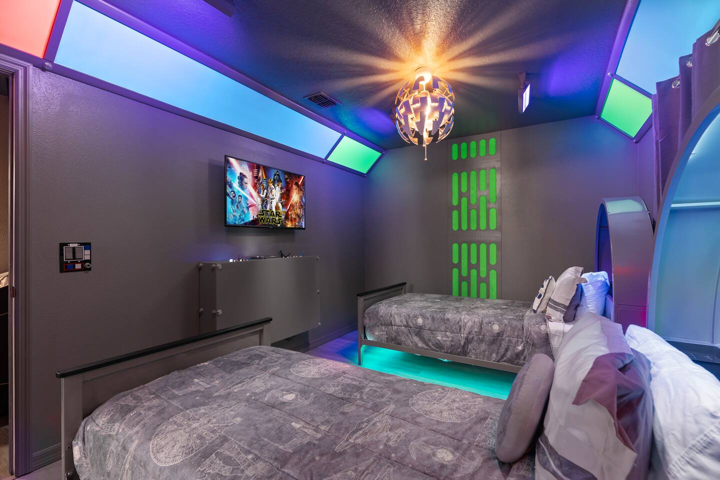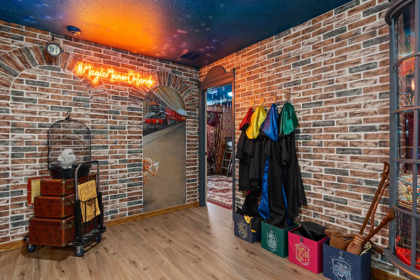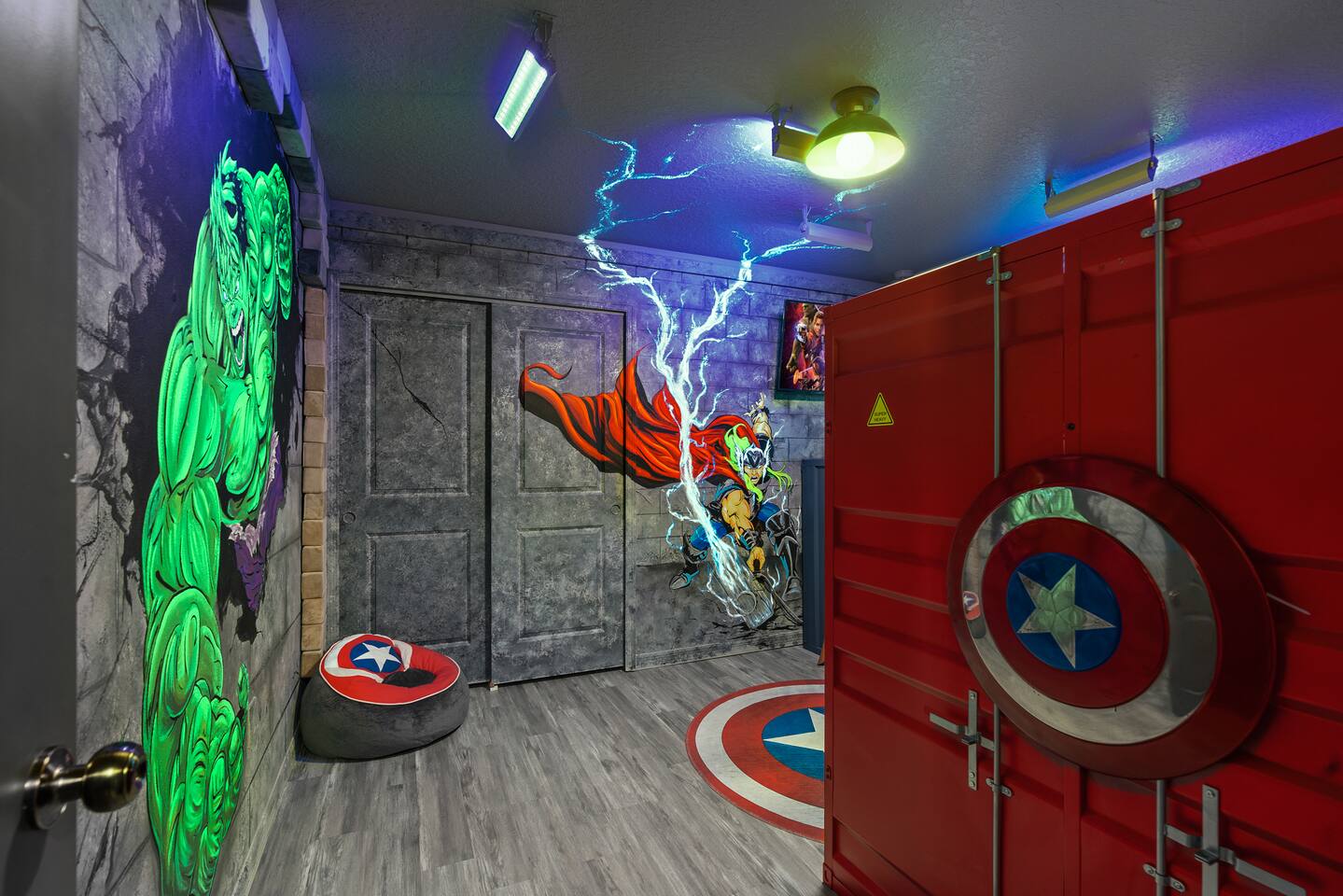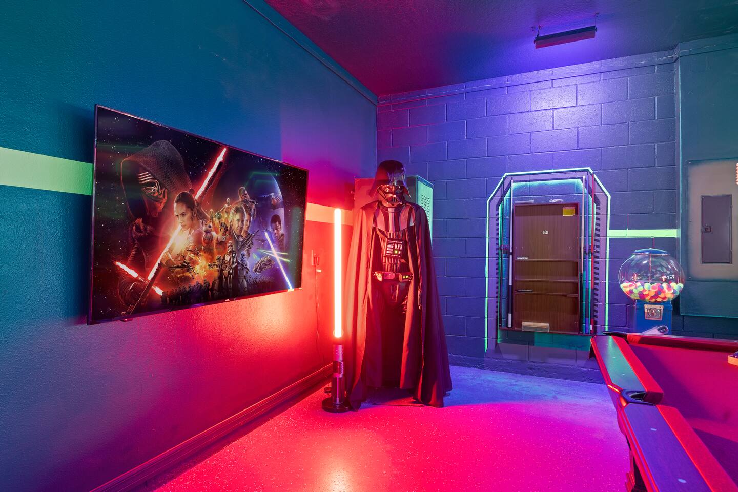 🏰 Welcome to Magic Manor – A Luxury Disney Retreat! 🌟 Step into a 4,400 sq ft dream vacation home, perfectly designed for families and groups seeking magic, fun, and relaxation near Disney World! Located in the premier Windsor Island Resort, this 9-bedroom, 8-bathroom escape offers something special for everyone and was recently featured on the TV Show Staycation! Is this property booked up? No worries—we’ve got another awesome home, same size, same resort, see our profile for our 5-star properties! ✨ Key Features: ✹ Themed Rooms: Experience 6 stunningly themed bedrooms, including Star Wars, Harry Potter (Gryffindor & Slytherin), Cinderella, Avengers, and Avatar. ✹ Exclusive In-House Escape Room: Unleash your inner wizard in the “Quest for the Quidditch”! ✹ Mandalorian Game Room & Diagon Alley Loft: Enjoy arcade games, pool table, selfie walls, and cozy family movie nights. ✹ Private Pool & Hot Tub: Swim, soak, and relax with Disney fireworks as your backdrop. 🍽️ Family-Ready Spaces: Cook gourmet meals in a modern kitchen with a coffee and popcorn bar. Dine together at a 18-person table or outdoors under the lanai with twinkle lights and cozy seating. 🌊 Resort Amenities Included: Dive into Windsor Island Resort's lazy river, mini golf, water slides, and more—all just steps away! 🎡 Prime Location: Minutes from Disney and other top Orlando attractions, restaurants, and shops. 🛏 Sleeps 25 Comfortably: With 9 spacious bedrooms; 2 king bedrooms (on first floor), 1 Queen, 2 Double sized bunk beds (Fulls), 2 Single sized bunk beds (Twins), two bedrooms with 2 Single sized beds each (4 Twins), and 1 princess single bed (Twin). Every guest will feel right at home. Exclusive Concierge Services (Upon Request): 🍽️ Private chef experiences 🎉 Event decoration services and Food Shopping and more! Additional Information: 1️⃣ Check-in: 4:00 PM, Check-out: 10:00 AM 2️⃣ Daily trash collection by HOA 3️⃣ Weekly pool and spa cleaning 4️⃣ Starter supply of essentials provided 5️⃣ Non-smoking property. 6️⃣ Travel insurance recommended * Due to HOA restrictions, a maximum of 5 vehicles are permitted per property. * Guest registration for all drivers is required at least of 48 hours in advance to access the community. * Parking is available in the driveway and the street. Please pay attention to parking signs to avoid getting towed. Book your magical stay today and make memories that last a lifetime!