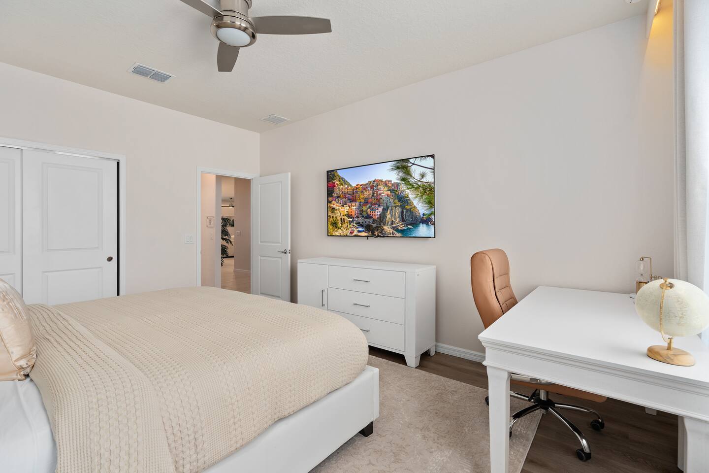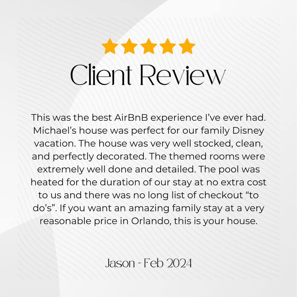 🏡 Guest Access ✹ PRIVATE HOME ACCESS Guests have full, private access to the entire house, including the pool, spa, and various entertainment zones designed for your ultimate enjoyment. ✹ PARKING Our home offers free parking for up to 5 cars in the driveway, with additional free street parking available. The community permits up to 5 vehicles for your stay. ✹ FAMILY-FRIENDLY AMENITIES Traveling with little ones? We’ve got you covered with essentials like a Pack ’n Play/travel crib, high chair, baby bath, and stroller. Need babysitting recommendations? Just ask! ✹ PET POLICY We adore pets, but our home maintains a strict no-pet policy to ensure a clean, allergy-friendly space for all guests. ✹ WORK-FROM-HOME SETUP Stay connected with free high-speed Wi-Fi throughout the house, a dedicated workspace in the primary bedroom, and multiple laptop-friendly spots to suit your needs. ✹ WINDSOR ISLAND RESORT ACCESS As our guest, you’ll enjoy full access to Windsor Island Resort's world-class amenities: ✹ Zero-entry pool, lazy river, water park, and double water slide. ✹ Basketball, sand volleyball, Pickleball, and cornhole courts. ✹ Fitness center, hammock garden, and game room. ✹ Mini golf, fire pit, and a children’s free-play area. ✹ Café and ice cream shop. ✹ Covered bar, food, family cabanas, and seating areas to relax. Finish your day with Disney fireworks views from the resort or our Lanai– the perfect way to cap off your magical adventure! We’re here to make your stay as comfortable, enjoyable, and memorable as possible. Feel free to reach out with questions or special requests. We can’t wait to host you!