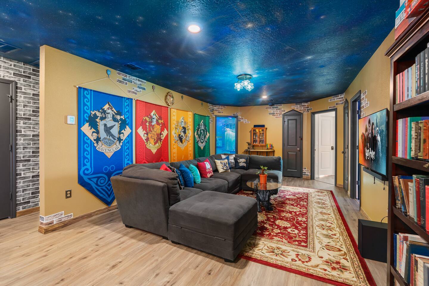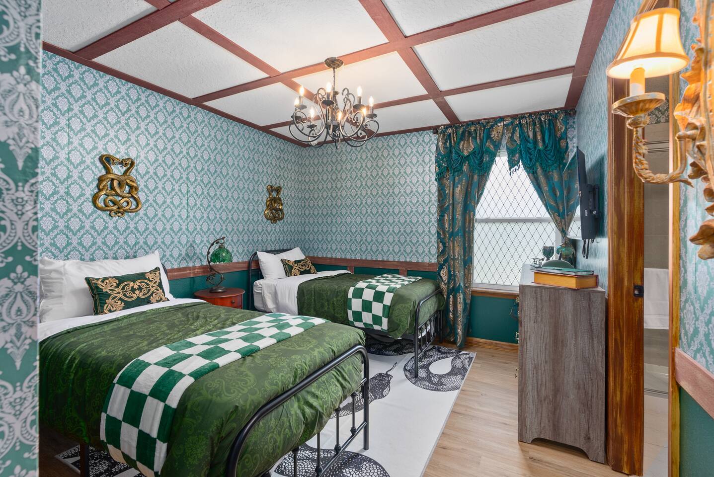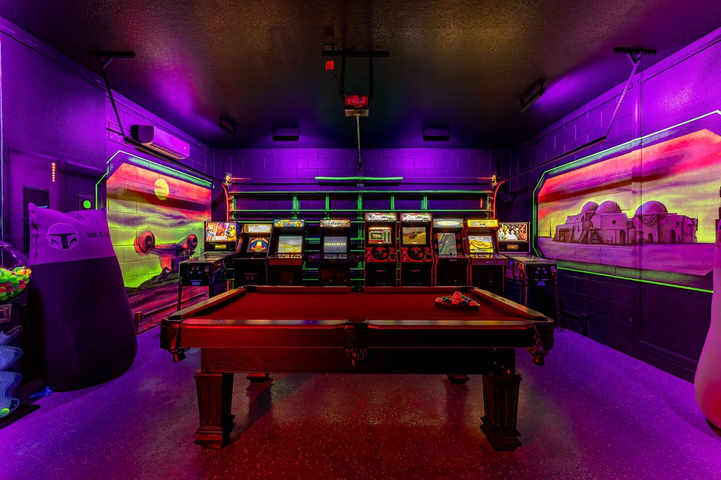 🎢 SLEEPS 25 🌟8 THEMED ROOMS 🕵️♂️ Escape Rm ☕️Coffee & Popcorn Bar 🕹️Arcade 🌟 Fully Stocked Kitchen 👩🍼Stroller/Pack N' Play/High Chair 🥵Private HEATED POOL and Hot Tub 🛜High Speed Wi-Fi "This was the best AirBnB experience I've ever had, The house was well stocked, clean, and themed extremely well" Jason 2024 Experience Magic Manor, an immersive luxury home curated for your ultimate ENJOYMENT! Modern 9 bedroom, 8 bathroom home sleeps up to 25.